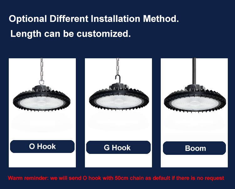 - La lampada high bay a LED UFO utilizza LED SMD 2835 super luminosi e ad alto lumen per rendere l'efficienza luminosa elevata 110-120lm/W, risparmiando oltre il 90% di energia. Adotta la tecnologia di patch più avanzata e il design convesso per offrire un'illuminazione più luminosa e una gamma di illuminazione regolabile più ampia.